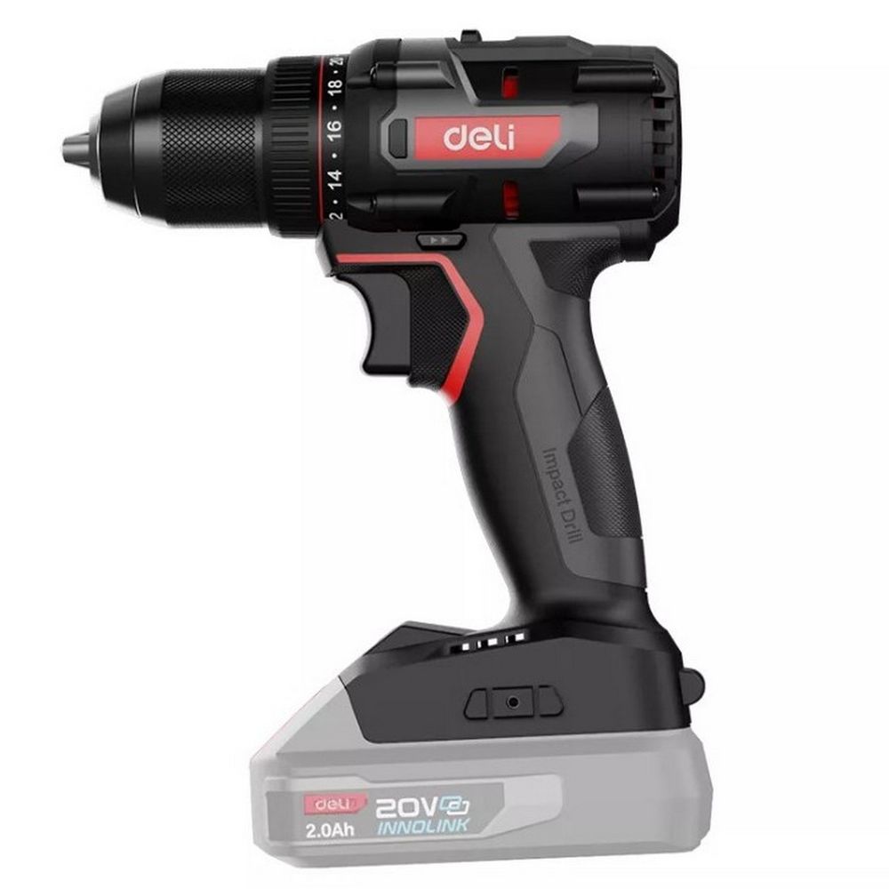 Дрель-шуруповерт аккумуляторная Deli DE-DZ20-2 (Без АКБ и ЗУ, 20В, 13мм, 70Нм, картон)