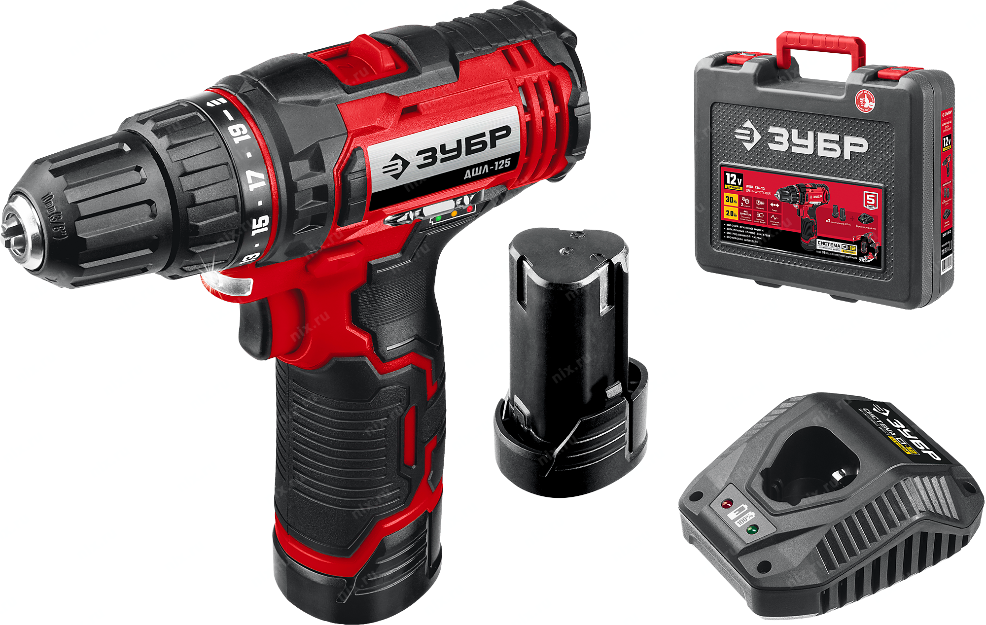 ЗУБР Дрель-шуруповерт в кейсе 12В, 2 АКБ (2Ач) [ДШЛ-125-22]