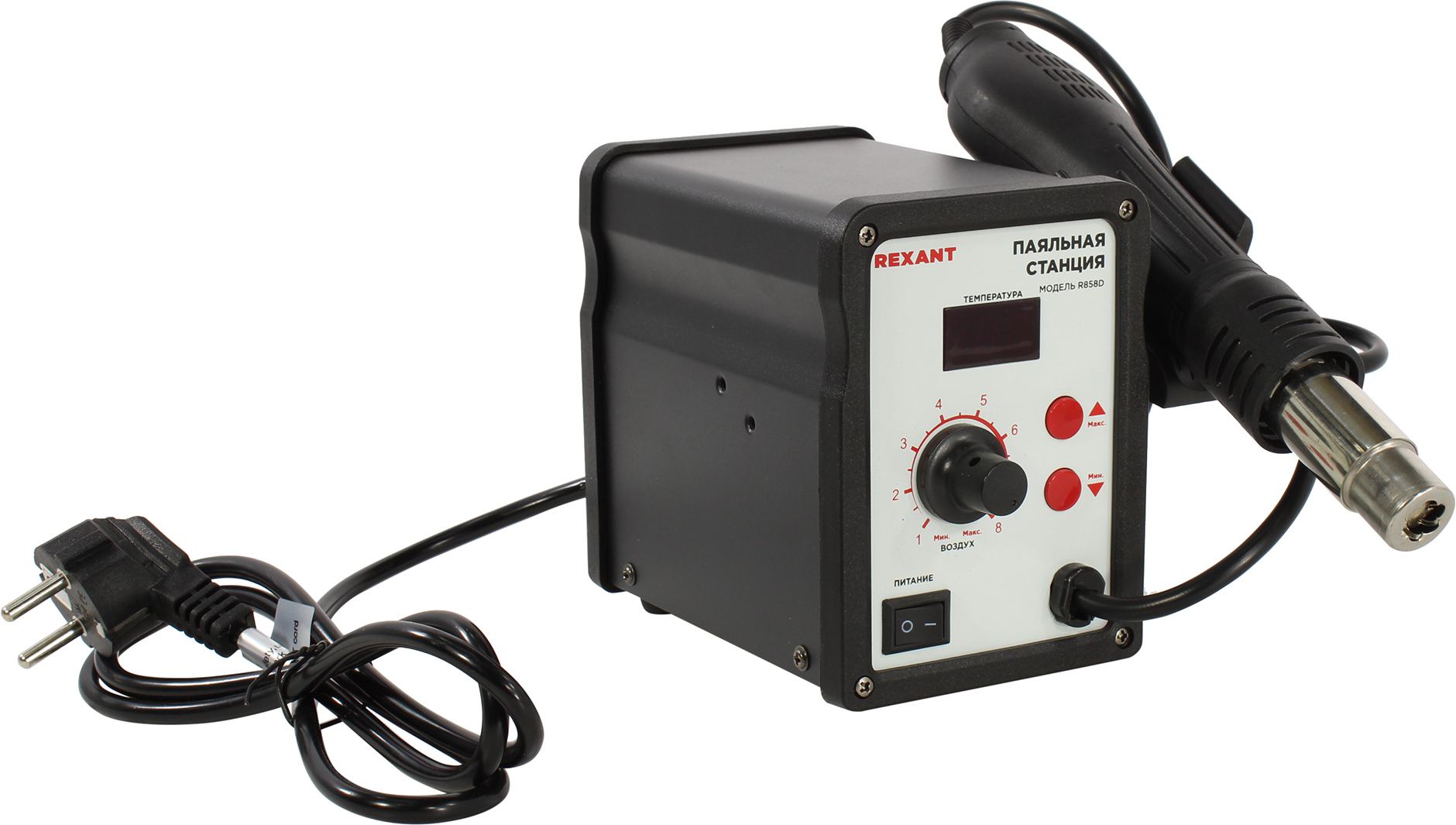 REXANT (12-0714) ПАЯЛЬНАЯ СТАНЦИЯ (ТЕРМОФЕН) ТЕРМОВОЗДУШНАЯ С ЦИФРОВЫМ ДИСПЛ 150-500°С (R858D)